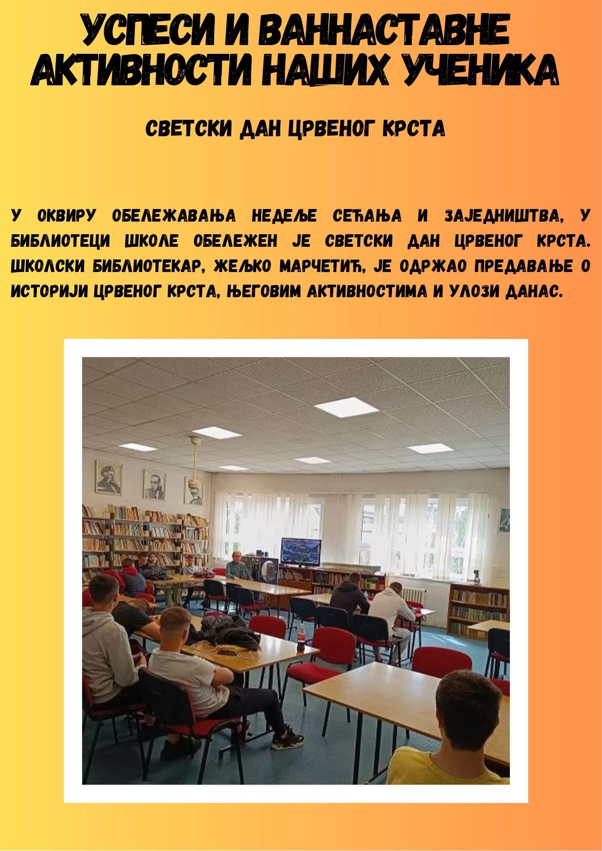 • Разговор о актуелним темама – болести зависности, деловање секти, трговина људима. 20/04/2026